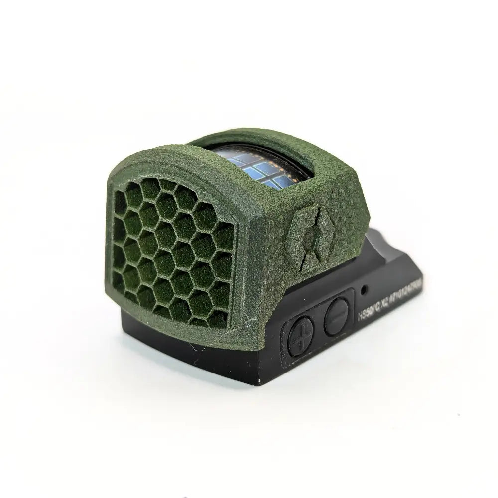 Upgrade your optics with the Shadowguard Dynamics Eclipse Cover – an innovative anti-reflection accessory engineered to block downrange reflections, cut out harsh glare, and shield your lens from dust and debris. Its ultra-thin honeycomb design features some of the thinnest walls on the market, providing superior anti-glare performance while keeping your view bright and unobstructed. Crafted from high-quality, lightweight polymer, the Eclipse Cover adds critical protection without adding bulk, enhancing your optic’s clarity and performance in any environment.